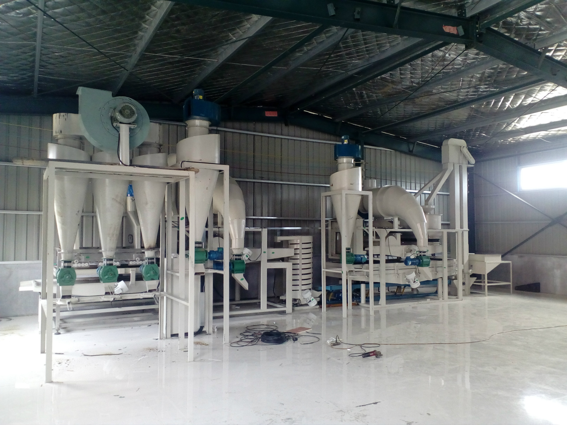 該設備由:脫殼分選機組、皮仁分選機組和靜電分離機組組成。