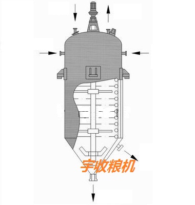其鍋體為一碟形頂蓋及錐形底的密閉回柱體容器.鍋內(nèi)設(shè)置有攪拌裝置和加熱盤管,動力電機(jī)裝在頂蓋上。另外還設(shè)有脫色劑進(jìn)口管、抽真空管、進(jìn)出油管、進(jìn)出冷卻水管等。